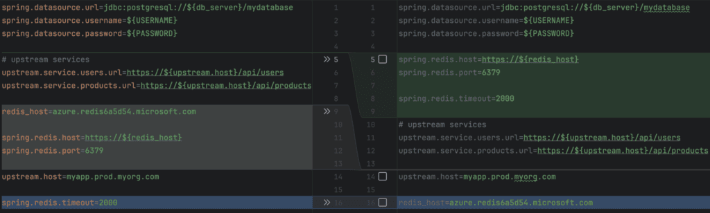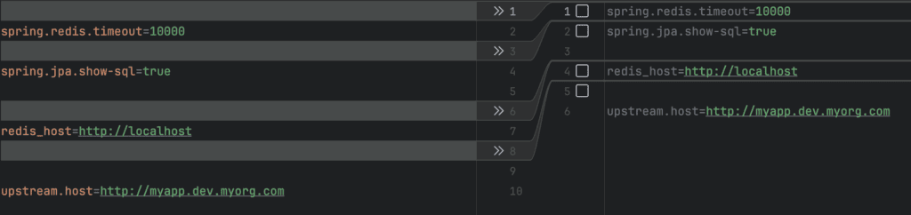 我们可以看到 http scheme 现在是 upstream.host 和 redis_host 键的一部分。这将使我们能够将更多通用性属性到 application.properties 中。